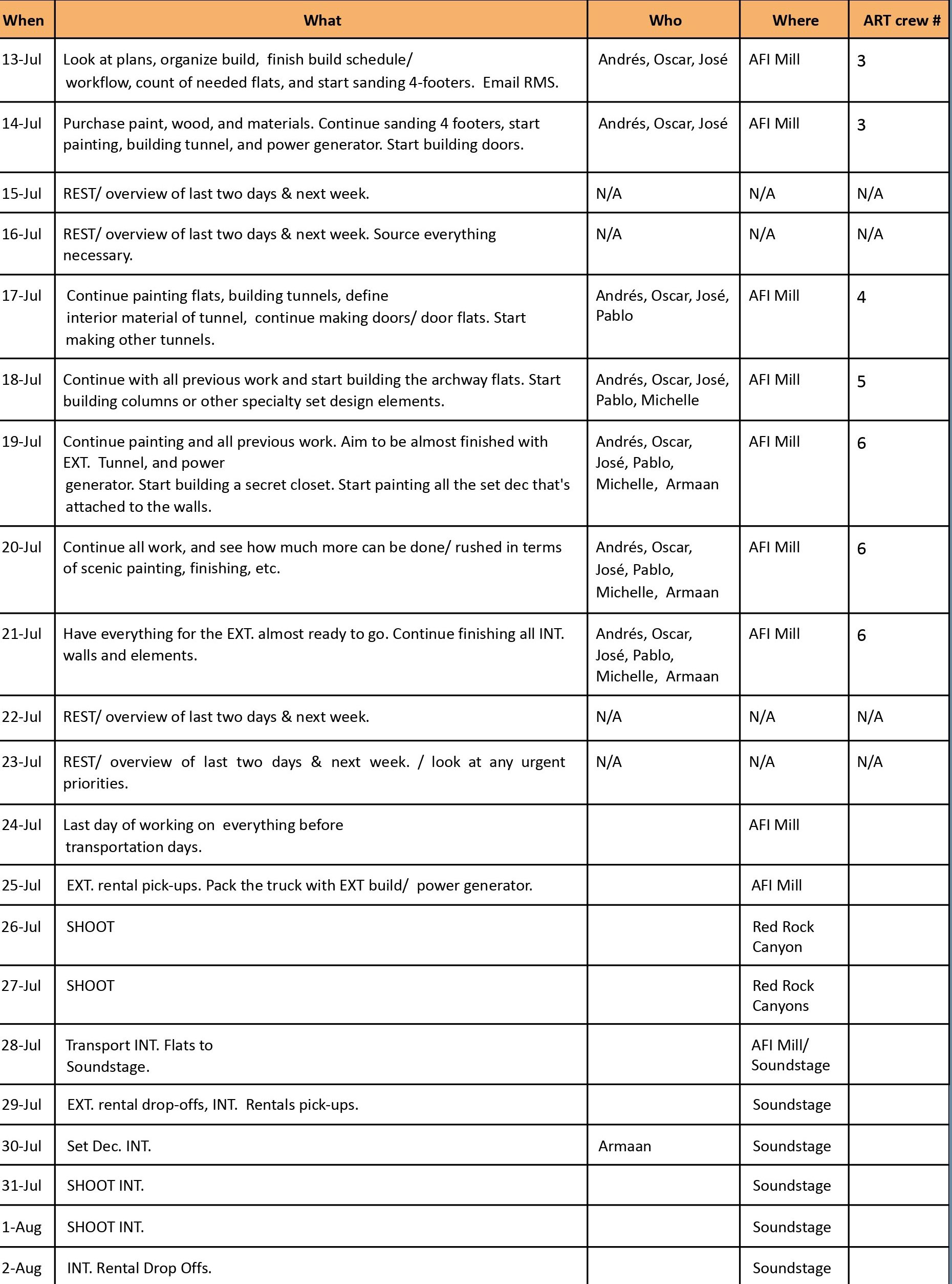 ART DEPARTMENT WORKFLOW & SET DEC BREAKDOWN